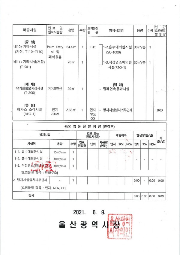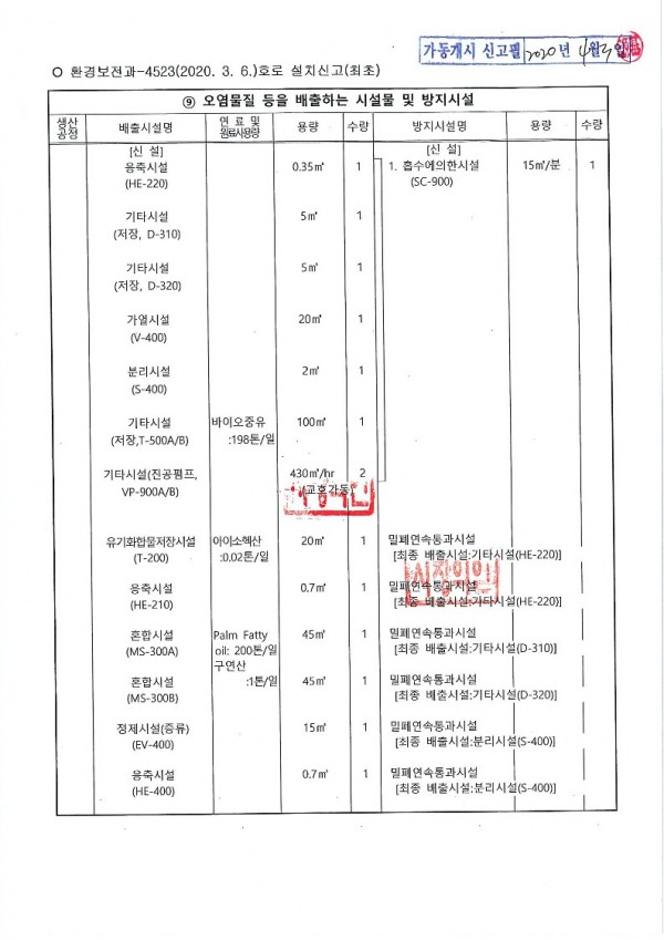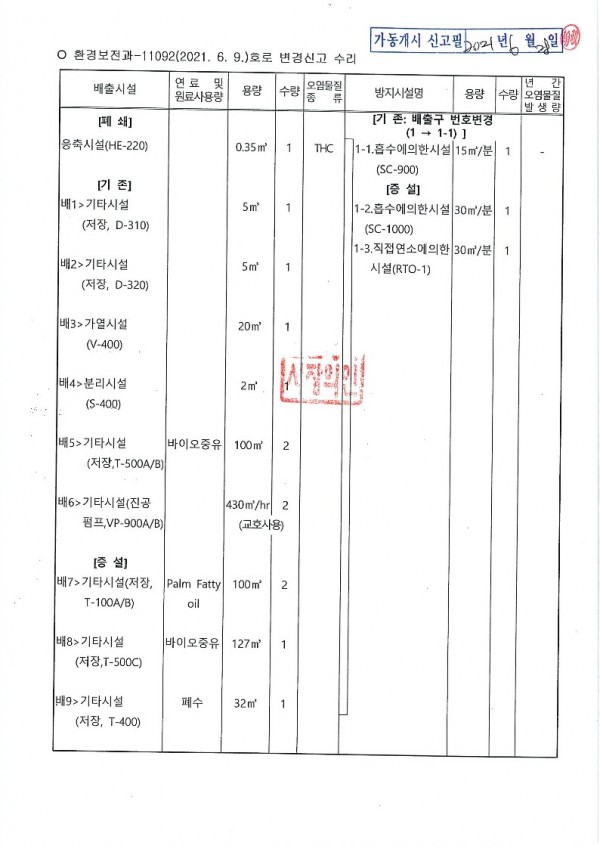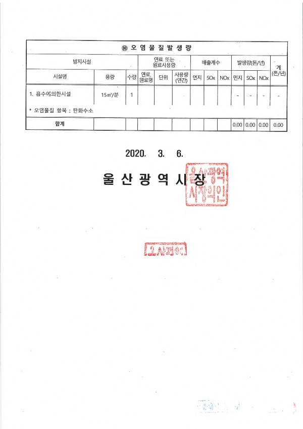 대기배출 시설 설치 신고증명서