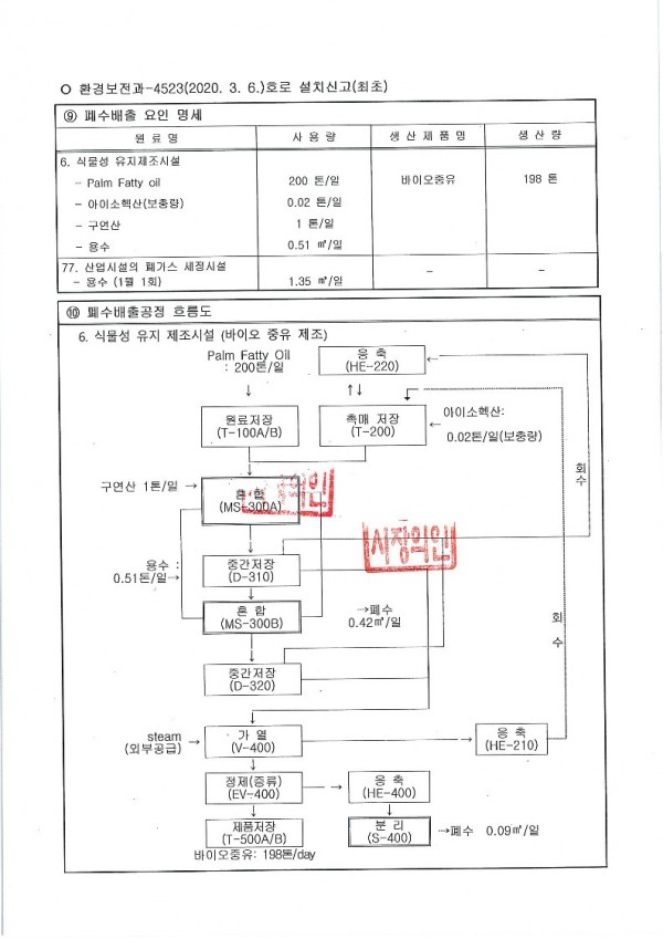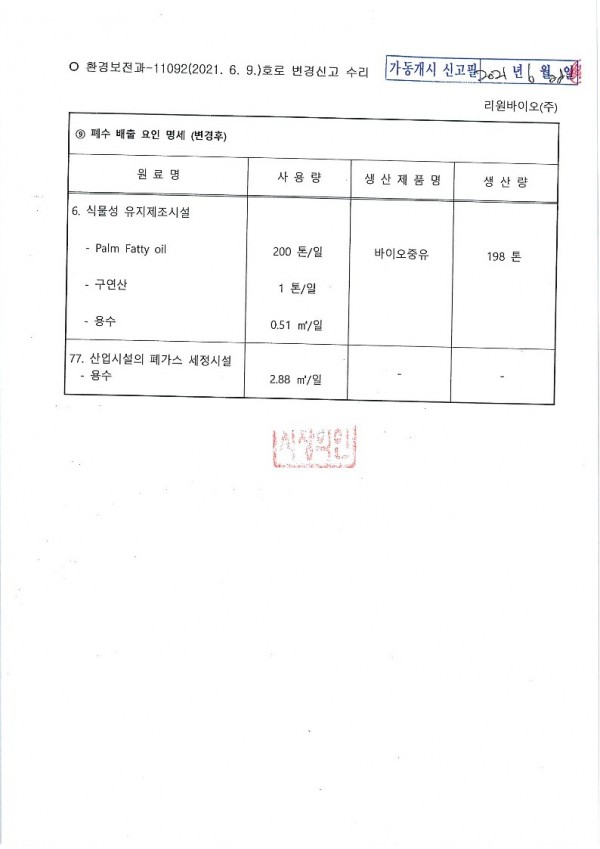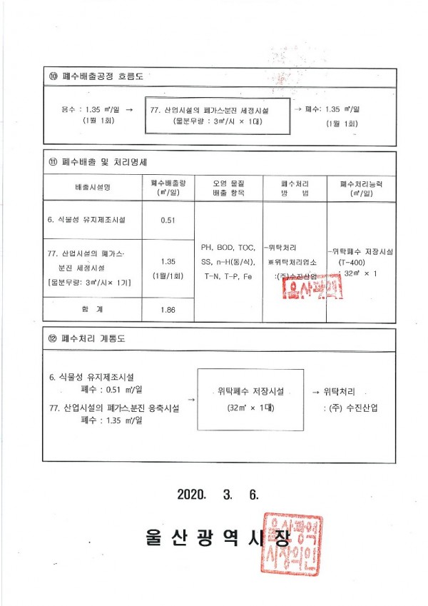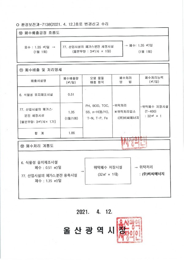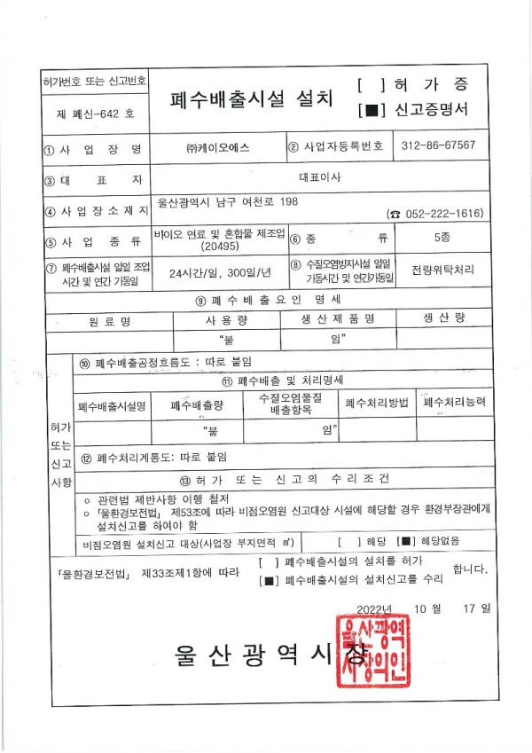 폐수배출시설 설치 신고증명서